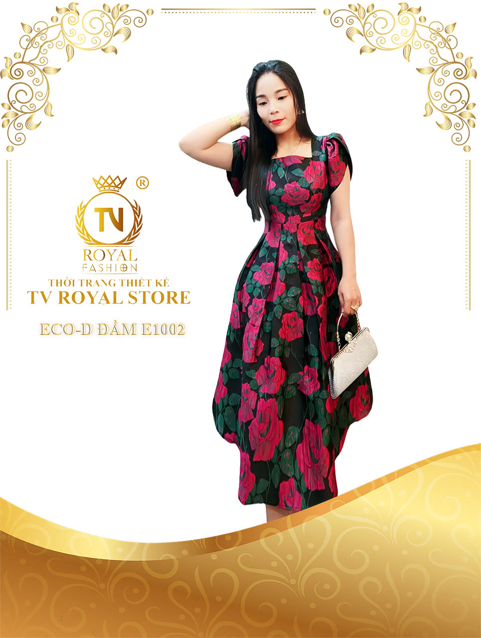 Không diêm dúa, không khoe da thịt, mẫu đầm của nhà TV Royal mang trong mình sự thanh lịch nhẹ nhàng, giống như nét duyên ngầm của phụ nữ Á Đông. Trên nền sắc hoa hồng trên nền đen trầm tĩnh, đường nét cắt may điêu luyện, thành thục được các nhà thiết kế tài ba vẽ hình, đắp dáng, giúp các quý cô không chỉ điệu đà mà còn thướt tha với dáng vóc đồng hồ cát.