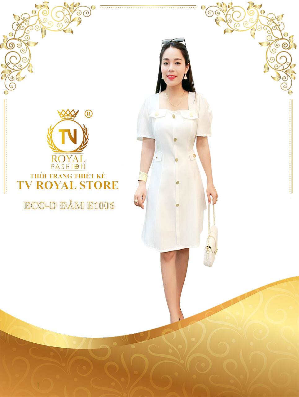 Không diêm dúa, không khoe da thịt, mẫu đầm của nhà TV Royal mang trong mình sự thanh lịch nhẹ nhàng, giống như nét duyên ngầm của phụ nữ Á Đông. Trên nền sắc vàng trầm tĩnh, đường nét cắt may điêu luyện, thành thục được các nhà thiết kế tài ba vẽ hình, đắp dáng, giúp các quý cô không chỉ điệu đà mà còn thướt tha với dáng vóc đồng hồ cát.