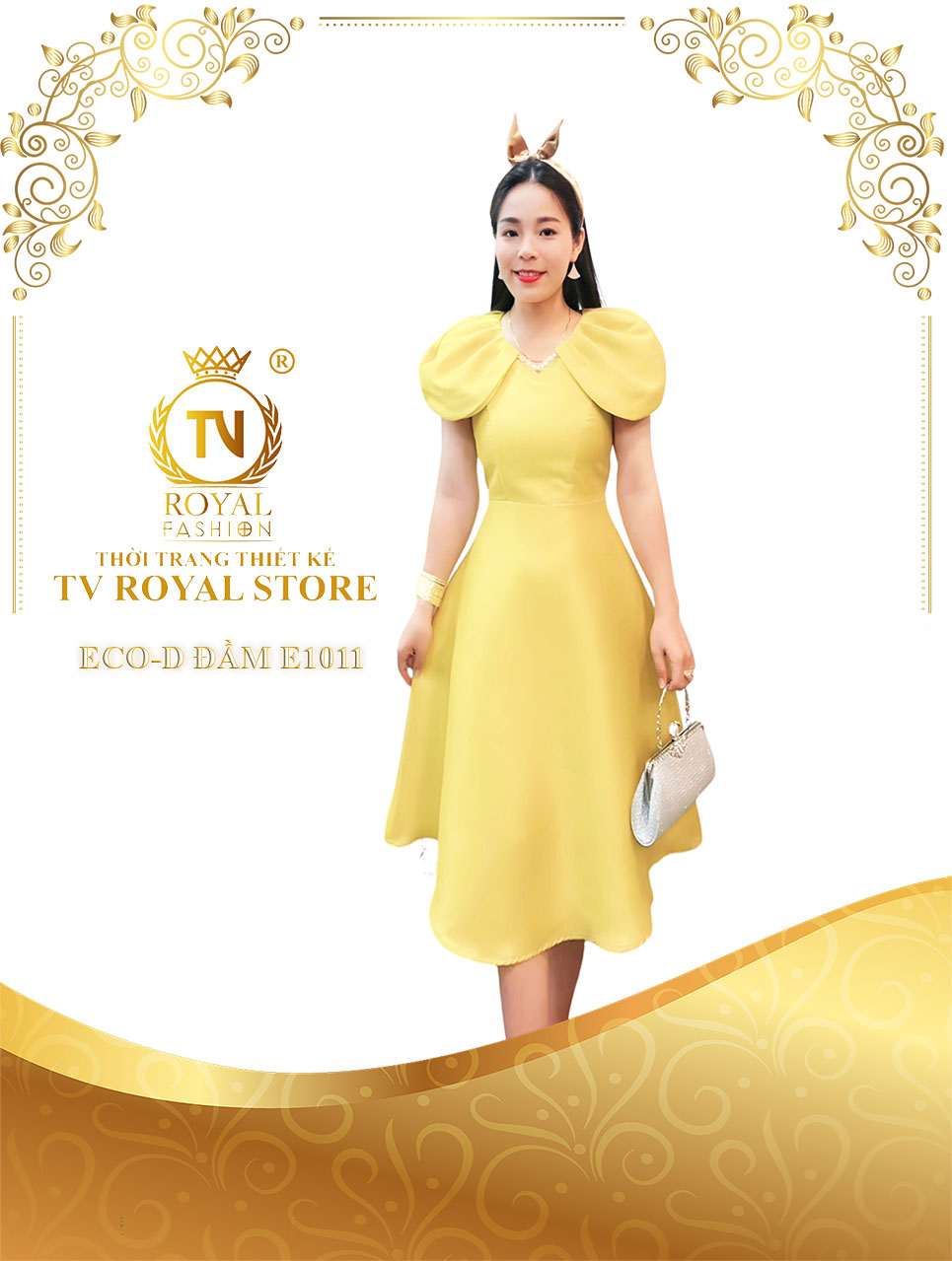 Không diêm dúa, không khoe da thịt, mẫu đầm của nhà TV Royal mang trong mình sự thanh lịch nhẹ nhàng, giống như nét duyên ngầm của phụ nữ Á Đông. Trên nền sắc vàng trầm tĩnh, đường nét cắt may điêu luyện, thành thục được các nhà thiết kế tài ba vẽ hình, đắp dáng, giúp các quý cô không chỉ điệu đà mà còn thướt tha với dáng vóc đồng hồ cát.