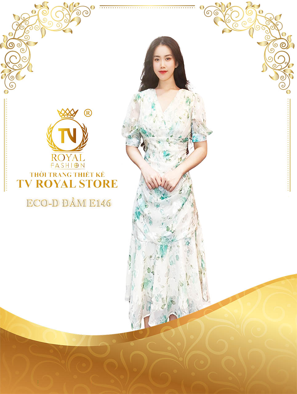 Thấu hiểu cơ thể của phái đẹp cần gì và thiếu gì, bài toán hình khối cân xứng giữa hai phần trên và dưới của cơ thể với điểm nhấn 3 vòng được các nhà thiết kế tài ba của TV Royal hóa giải một cách thuyết phục. Phần cổ kinh điển cùng lúc tạo hiệu ứng với phần tay bồng nhẹ và điểm thắt eo chuẩn xác, ôm nhẹ vòng 2, đánh phồng phần chân váy khoe ra nét đẹp kiều diễm ở phần hông, khoe dáng thanh thoát. Chiều dài của váy vừa vặn, đủ phô diên đôi chân thon dài, quyến rũ nhưng không đánh mất đi sự duyên dáng và nền nã. Phong cách đầm nữ nhã nhặn của sắc xanh với hiệu ứng phản quang từ chính chất liệu cao cấp, xa xỉ, đem lại sức hút, kích thích thị giác của cả người mặc và người nhìn, giúp đầm nổi bật như ngôi sao sáng trên bầu trời đêm.