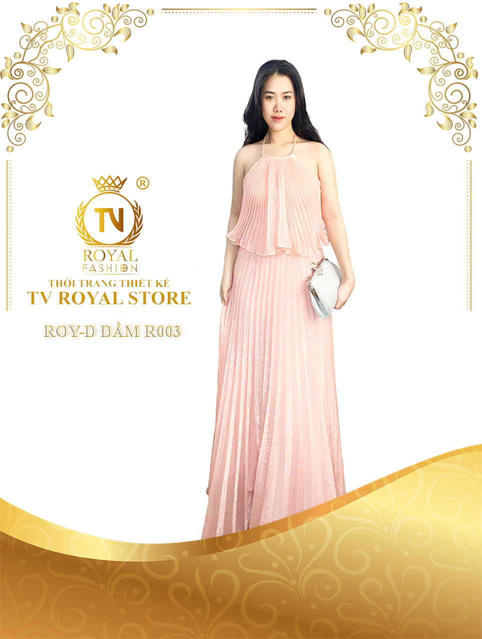 Mẫu đầm của nhà TV Royal mang trong mình sự thanh lịch nhẹ nhàng, giống như nét duyên ngầm của phụ nữ Á Đông. Đường nét cắt may điêu luyện, thành thục được các nhà thiết kế tài ba vẽ hình, đắp dáng, giúp các quý cô không chỉ điệu đà mà còn thướt tha với dáng vóc đồng hồ cát.