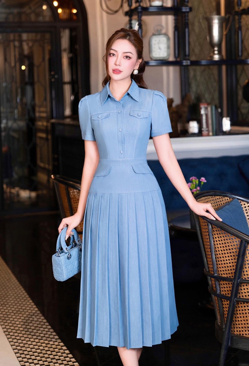 Lại thêm một thiết kế mới trong bộ sưu tập Luxury được các cô nàng nhiệt tình đón nhận. Chiếc đầm xanh biển ngọt ngào được ví như một bông hoa ngát hương và yêu kiều. Từ kiểu dáng, màu sắc tới chất liệu đều hướng tới vẻ đẹp mềm mại mà quý phái. Thông điệp mà các nhà thiết kế muốn gửi gắm trong chiếc đầm này chính là sự trân trọng, nâng niu đối với phụ nữ. Mỗi quý cô là một bông hoa rạng rỡ sắc hương. Bông hoa ấy chỉ đẹp, chỉ thơm khi người ta hiểu hết được vẻ đẹp tiềm ẩn bên trong nó. Thiết kế nhẹ nhàng, uyển chuyển từng đường nét khiến chiếc đầm Luxury khoe trọn được sự mong manh nhẹ nhàng kính đáo đầy sang trọng, mềm mại của phái nữ.