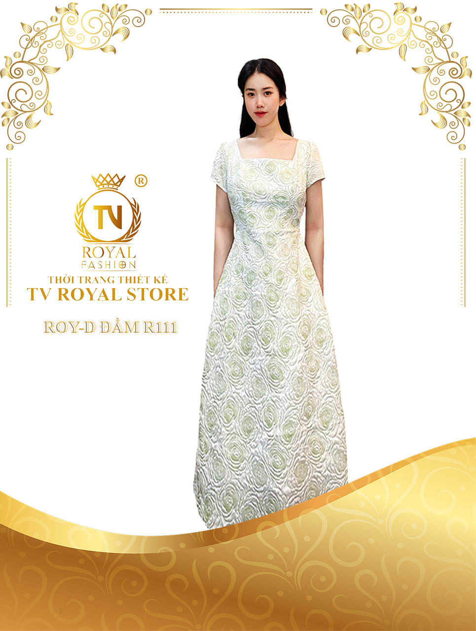 Mẫu đầm của nhà TV Royal mang trong mình sự thanh lịch nhẹ nhàng, giống như nét duyên ngầm của phụ nữ Á Đông. Đường nét cắt may điêu luyện, thành thục được các nhà thiết kế tài ba vẽ hình, đắp dáng, giúp các quý cô không chỉ điệu đà mà còn thướt tha với dáng vóc đồng hồ cát.