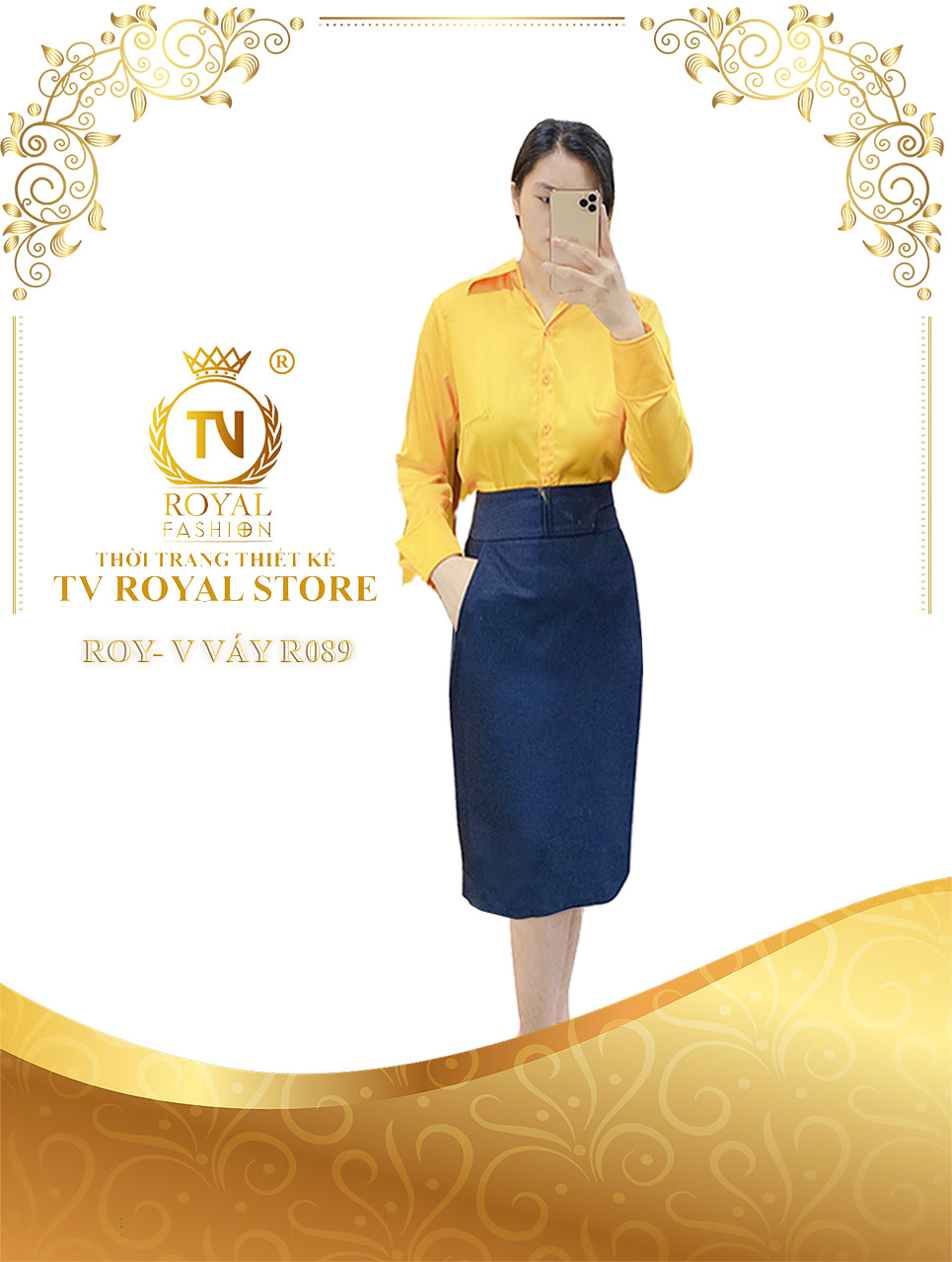 Kiểu chân váy công sở dung hòa giữa phong cách hiện đại, thanh lịch và sự trang trọng, tinh tế trở nên trọn vẹn khi kết hợp cùng áo sơ mi. Công thức phối kinh điển hai gam đối lập vàng và xanh, đem đến sự ăn ý, tôn lên đường cong cơ thể với tỉ lệ đường nét cuốn hút.